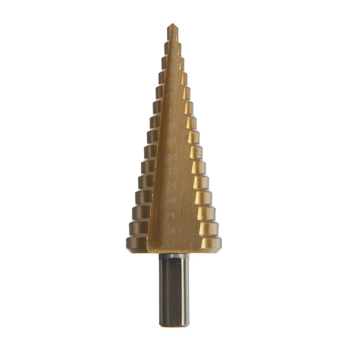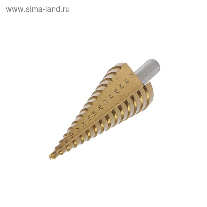 Сверло ступенчатое ТУНДРА, HSS, TiN, трехгранный хвостовик, 4 - 32 мм