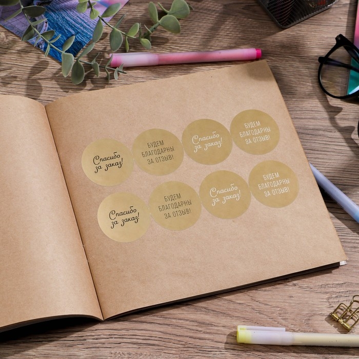Наклейки для бизнеса «Спасибо за отзыв», 40 шт, 4 х 4 см