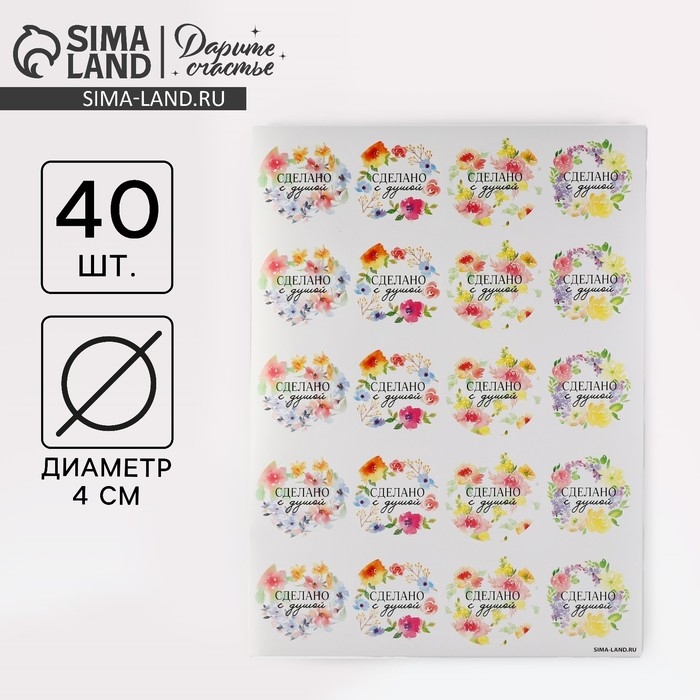 Наклейки для бизнеса «Сделано с душой», 40 шт, 4 х 4 см