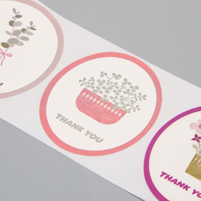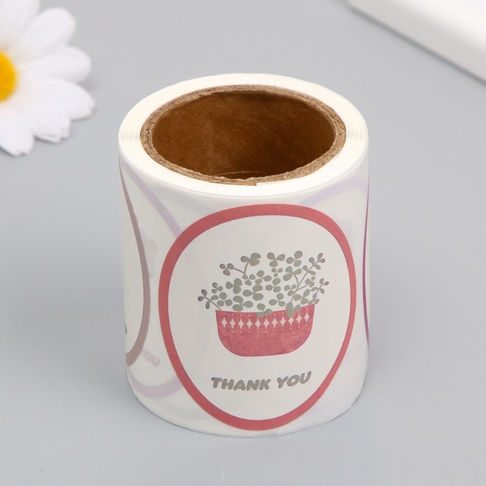 Наклейка бумага "Благодарность. Цветы в вазе" d=2,5 см 120 шт в рулоне 5,7х5,7х6 см