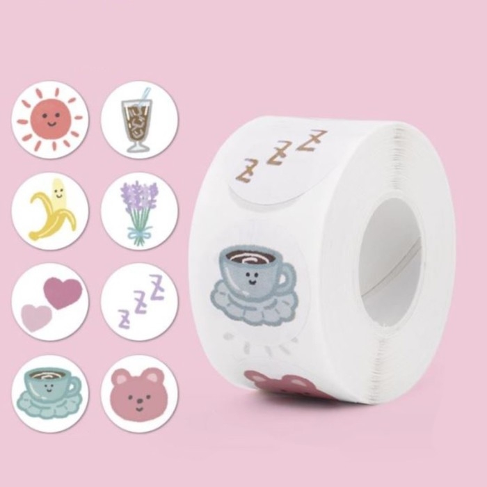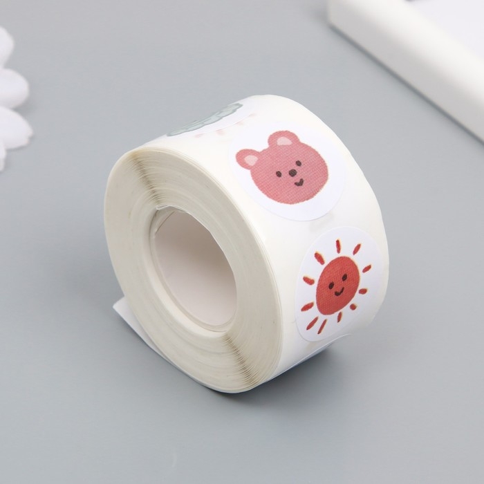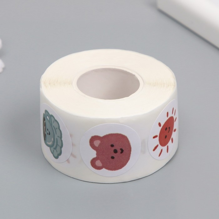 Наклейка бумага "Весёлые картинки" d=2,5 см 500 шт в рулоне 3х5,5х5,5 см