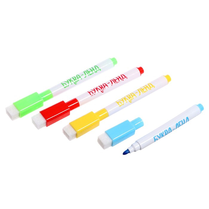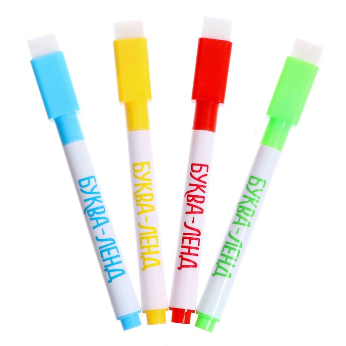 В наборе 2 раскраски и 8 разноцветных маркера на водной основе со стирателем на колпачке.