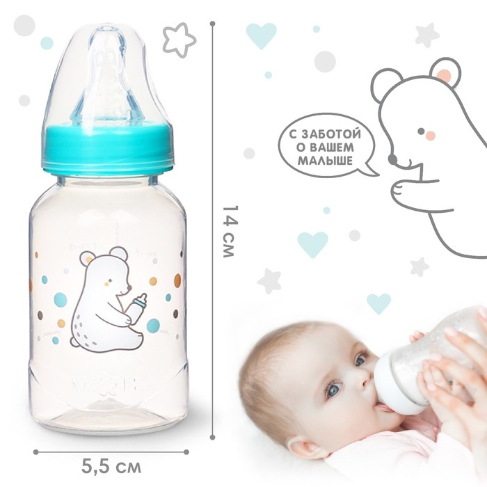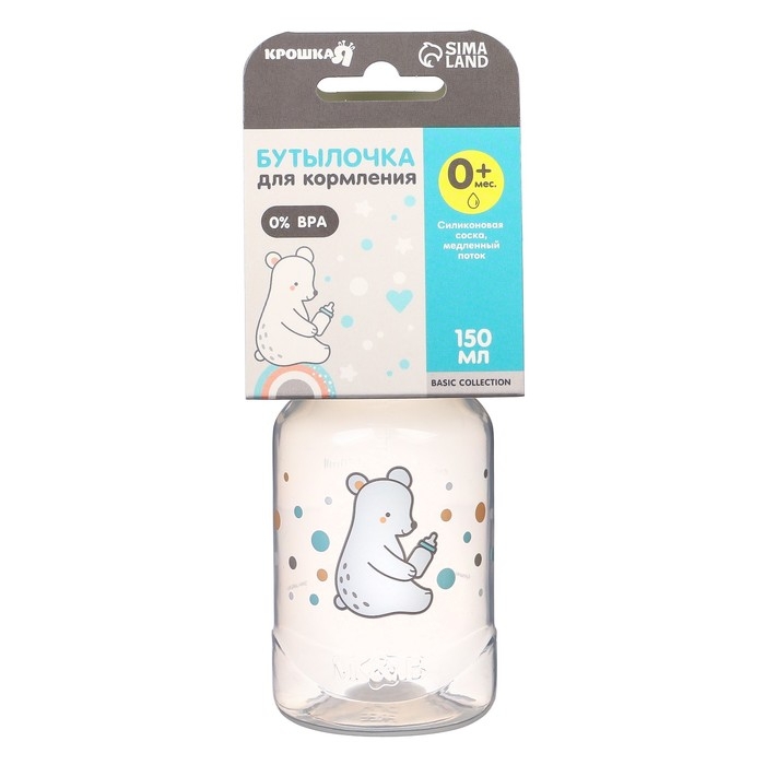 Бутылочка для кормления «Медвежонок Basic», классическое горло, 150 мл., от 0 мес., цвет белый/бирюзовый