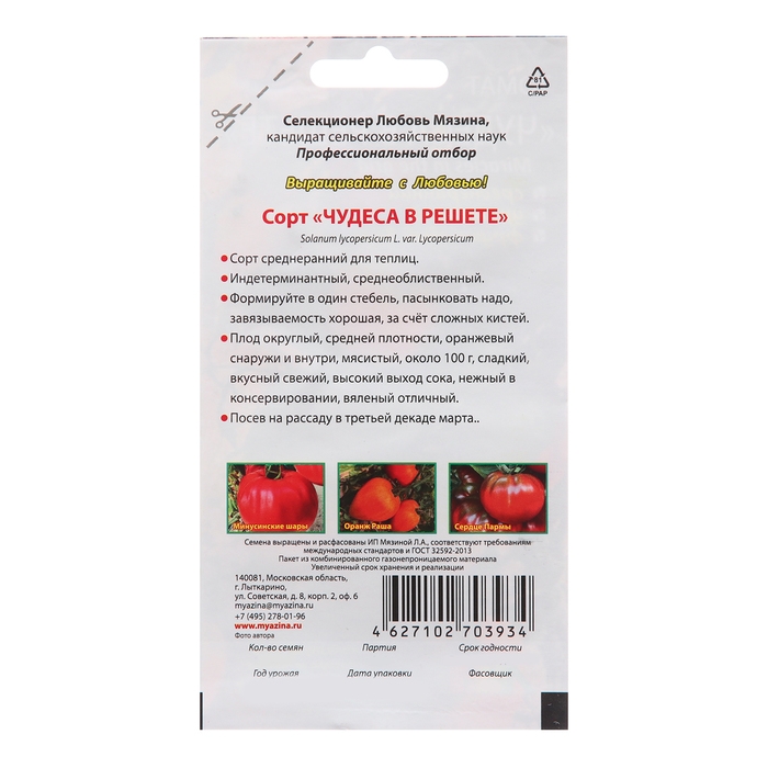 Сорт среднеранний для теплиц.Индетерминантный, среднеоблиственный.Формируйте в один стебель, пасынковать надо, завязываемость хорошая за счет сложных кистей.Плод округлый, средней плотности, оранжевый снаружи и внутри, мясистый, около 100 г, сладкий, вкусный свежий, высокий выход сока, нежный в консервировании, вяленый отличный.Посев на рассаду в третьей декаде марта.