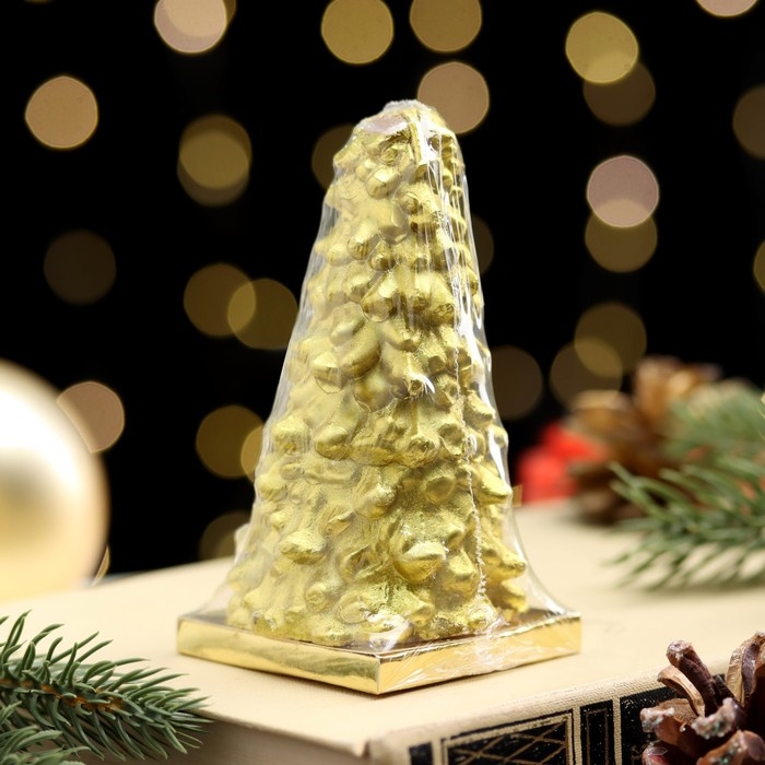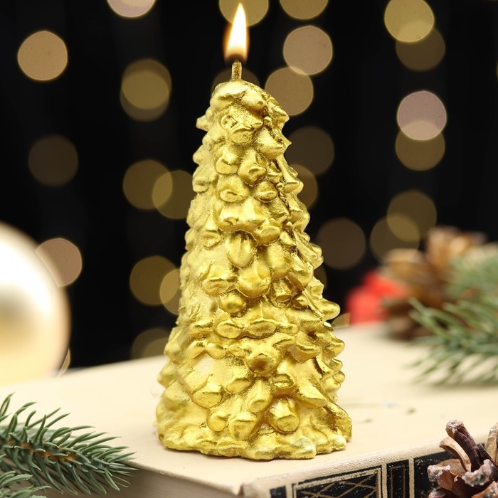 Новый год Свеча новогодняя "Ёлка" 10х5см, золото