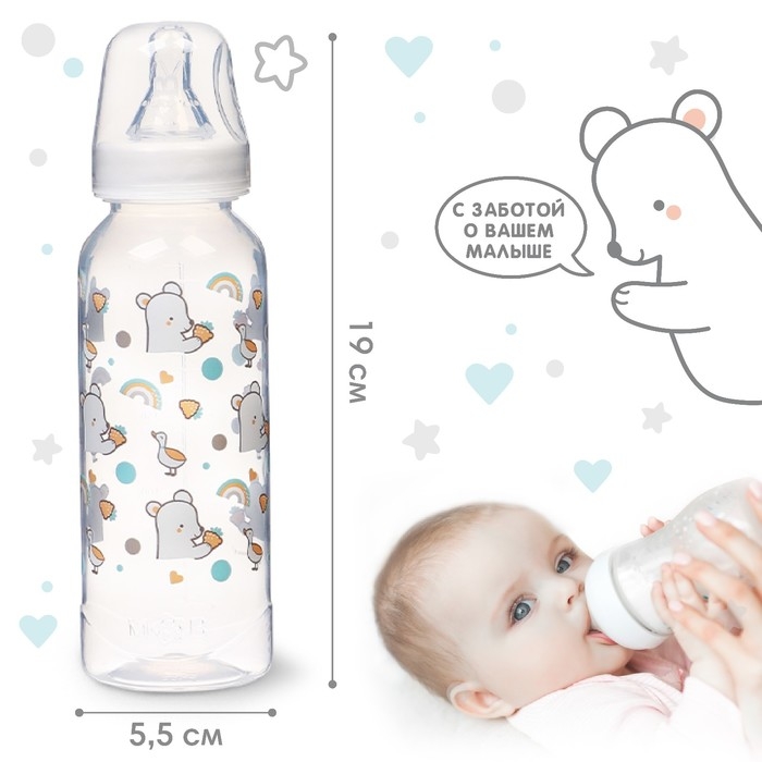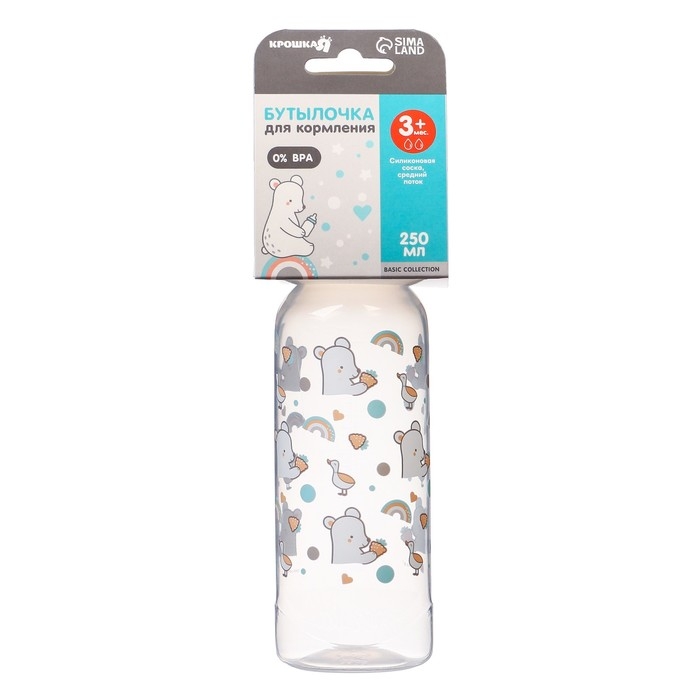 Бутылочка для кормления «Медвежонок Basic», классическое горло, 250 мл., от 3 мес., цвет белый/бирюзовый