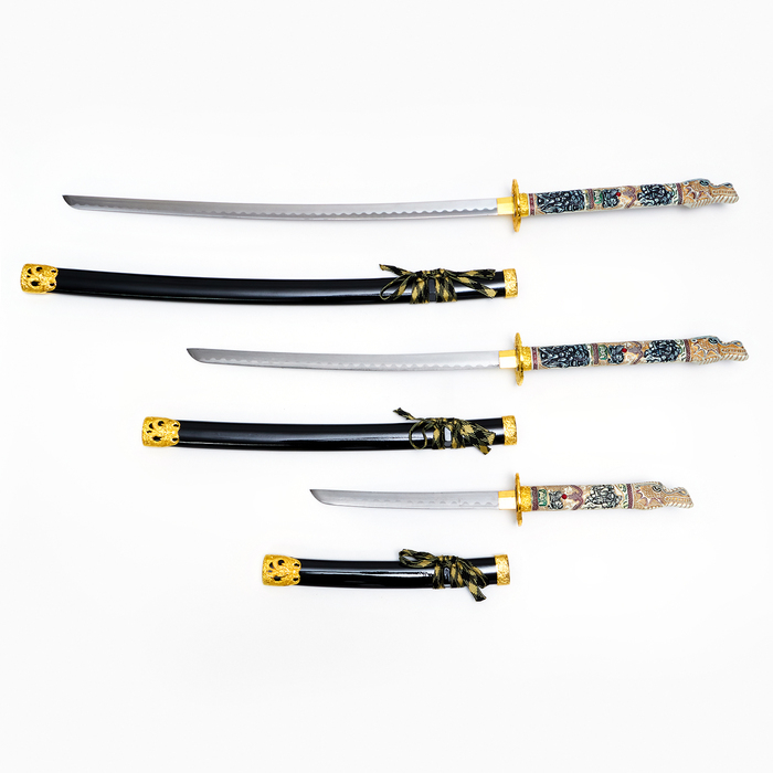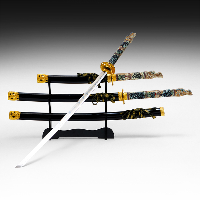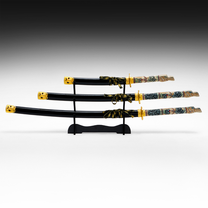 Сув. изделие катаны 3в1 на подставке, ножны дерево, голова дракона полистоун, черн 60/90/108