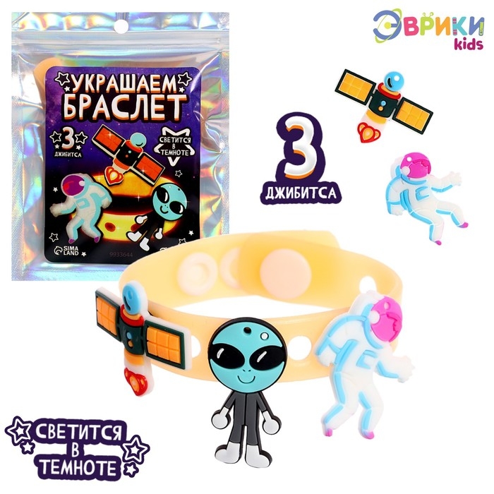 Милый браслетик «Джибитсы: Космос», светящийся, силиконовый