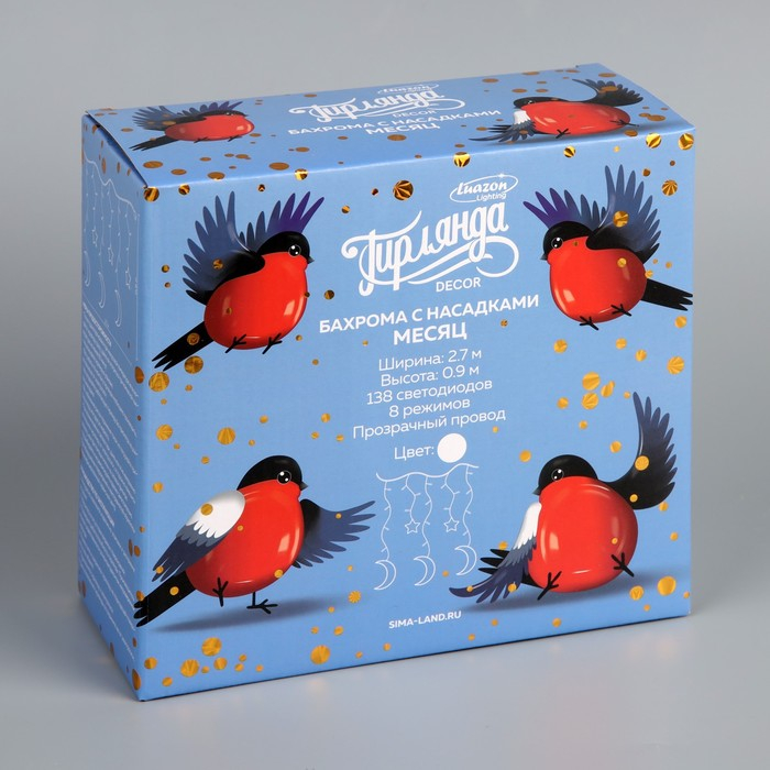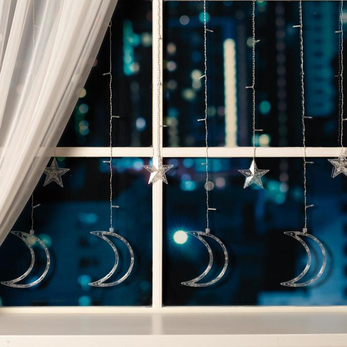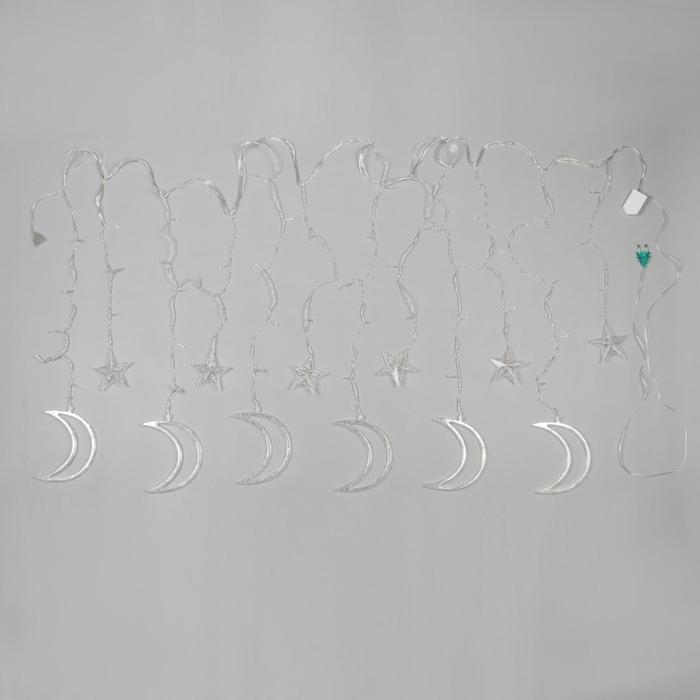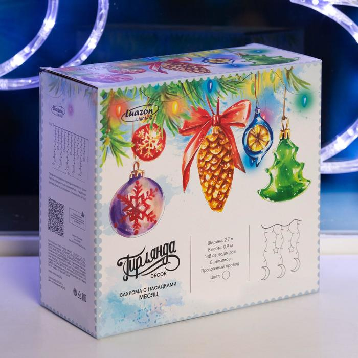 Гирлянда «Бахрома» 2.7 × 0.9 м с насадками «Месяц», IP20, прозрачная нить, 138 LED, свечение белое, 8 режимов, 220 В