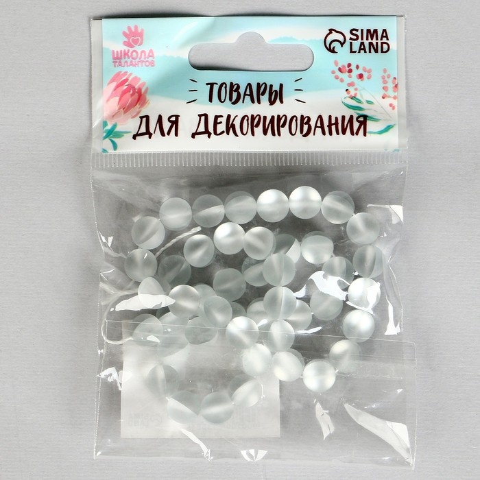Бусины из натурального камня «Кошачий глаз», набор 46 шт., размер 1 шт. — 8 мм, матовый серо-белый