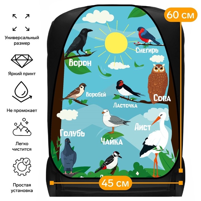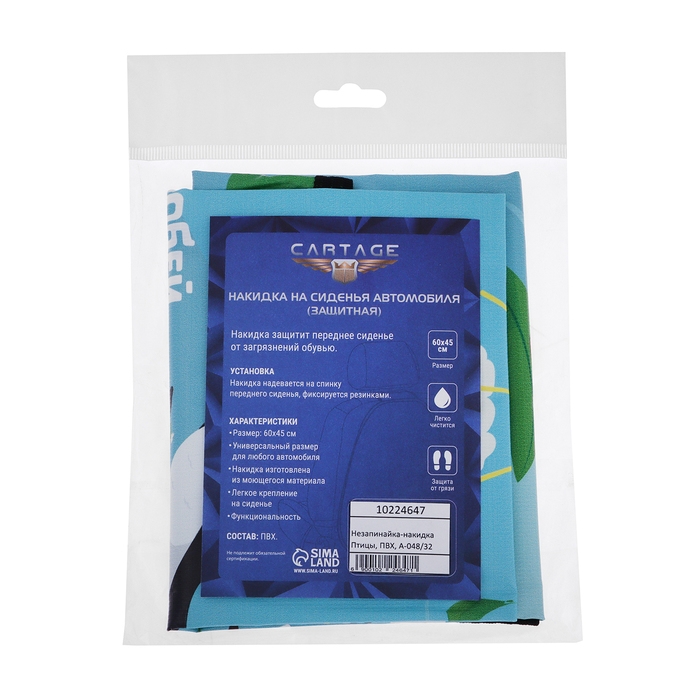 Накидка на сиденье автомобильное Cartage Птицы, ПВХ, 60 х 45 см, европодвес