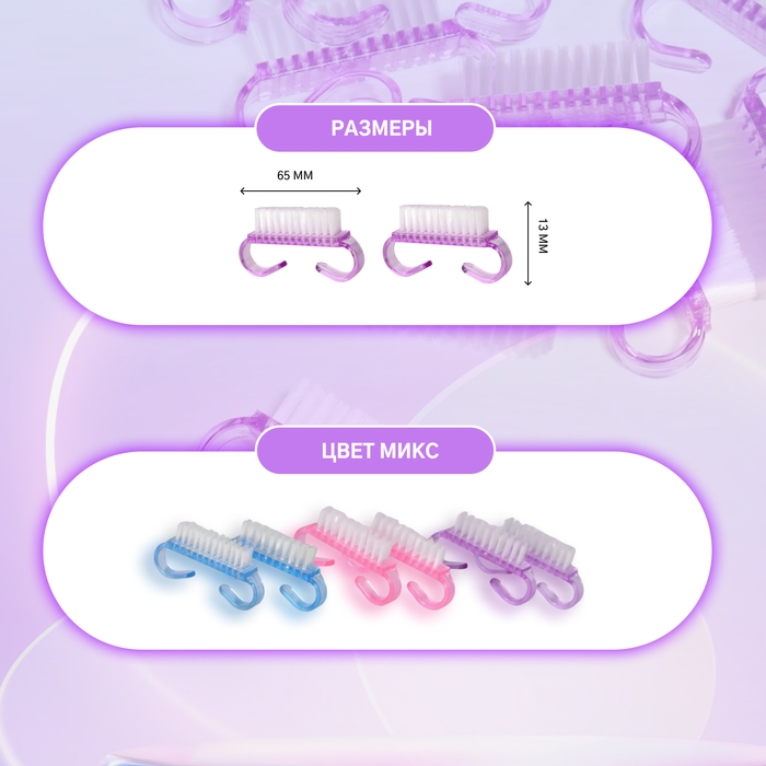 Щётки для маникюра/педикюра, 10 шт, 6,5 × 1,3 см, цвет МИКС