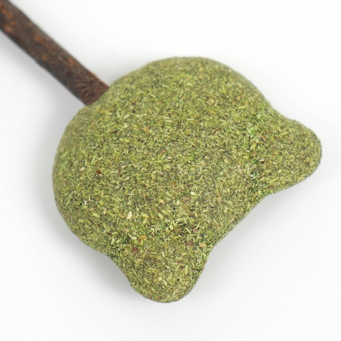 Прессованная мята прикреплена к палочке из мататаби - это натуральное растение, которое обладает особым ароматом и активными веществами, которые привлекают кошек и стимулируют их играть и жевать палочки. Представлена в виде миленькой "Кисы".