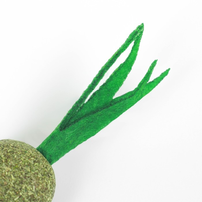 Кошачья мята имеет аромат, который особенно привлекает кошек. Играя с игрушкой, она может облизывать и обнюхивать мяту, что вызывает у нее ощущение удовольствия и блаженства. Сверху игрушки прикреплен мягкий текстиль в виде батвы, напоминая "Морковку".