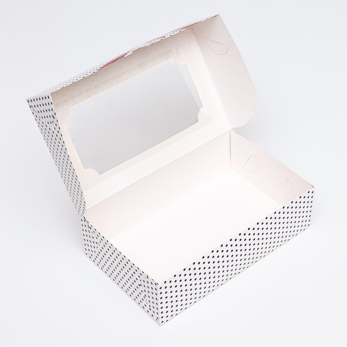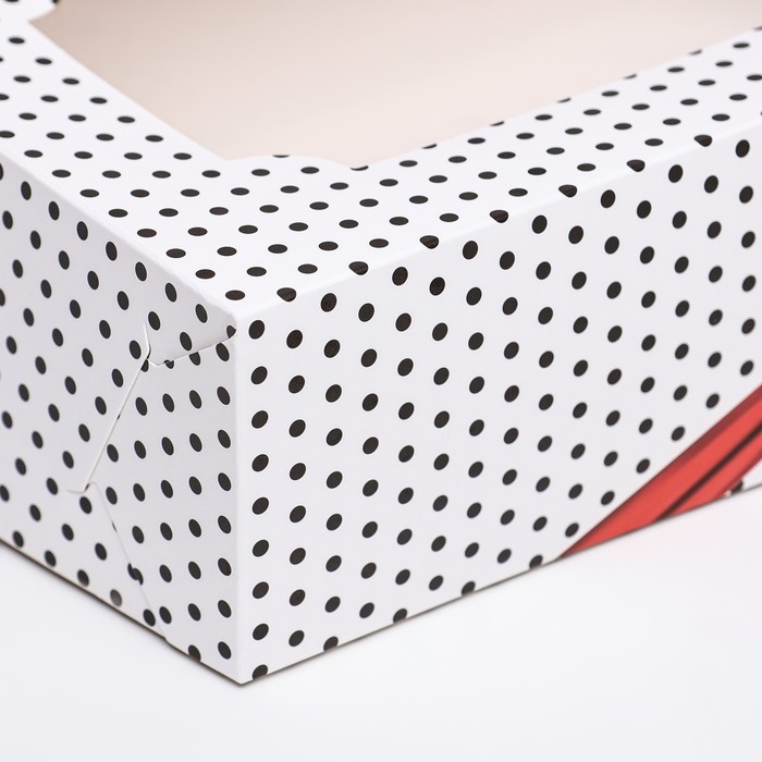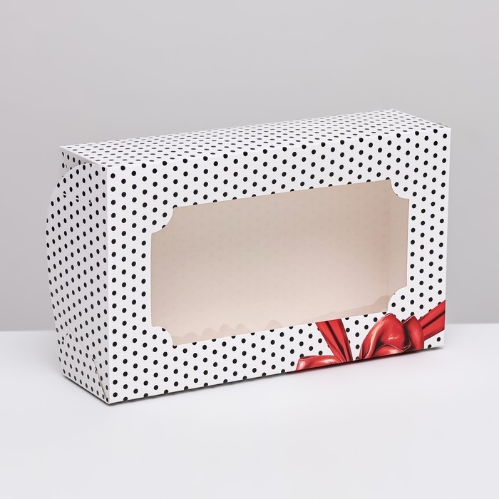 Коробка складная с окном под зефир "Горошек с бантиком", 25 х 15 х 7 см