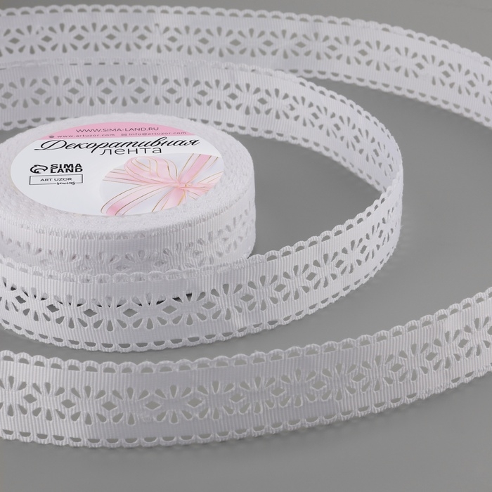 Лента декоративная, репсовая «Ажурные цветы», 25 мм × 9,1 ± 0,5 м, цвет белый