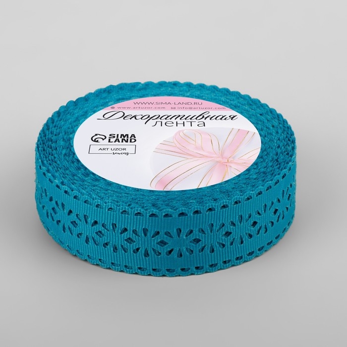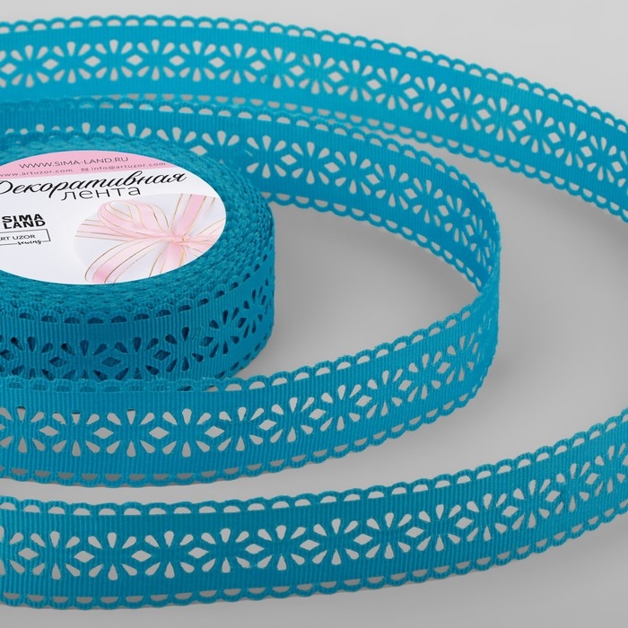 Лента декоративная, репсовая «Ажурные цветы», 25 мм × 9,1 ± 0,5 м, цвет ярко-голубой