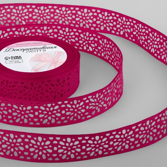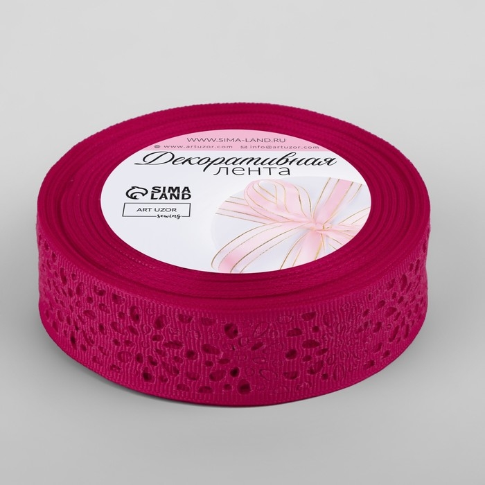 Лента декоративная, репсовая, ажурная, 25 мм × 9,1 ± 0,5 м, цвет малиновый
