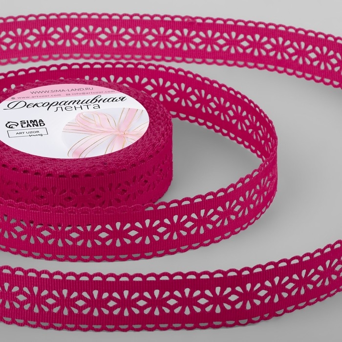 Лента декоративная, репсовая «Ажурные цветы», 25 мм × 9,1 ± 0,5 м, цвет малиновый