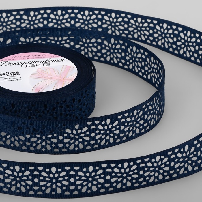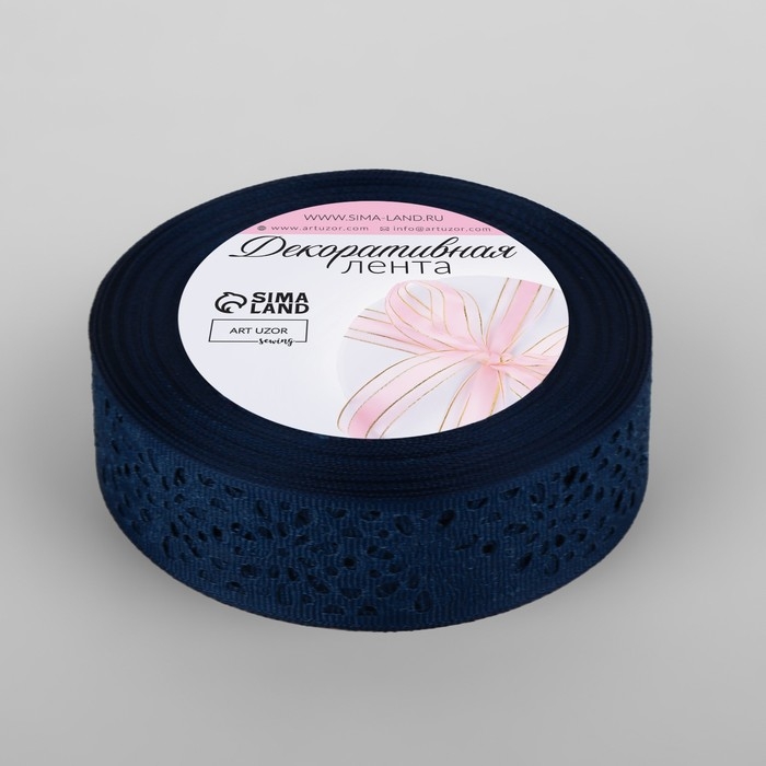 Лента декоративная, репсовая, ажурная, 25 мм × 9,1 ± 0,5 м, цвет тёмно-синий