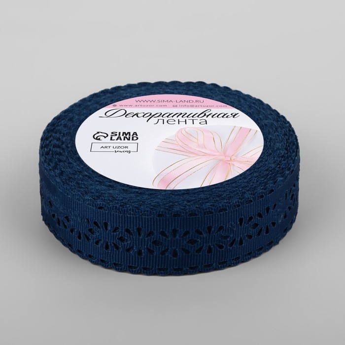 Лента декоративная, репсовая «Ажурные цветы», 25 мм × 9,1 ± 0,5 м, цвет тёмно-синий