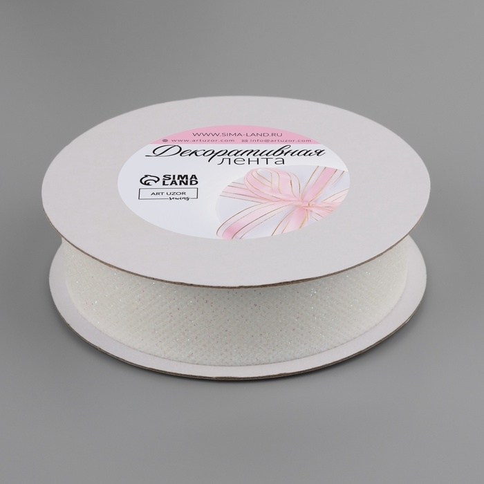 Лента декоративная «Блёстки», 25 мм × 9,1 ± 0,5 м, цвет белый с перламутром