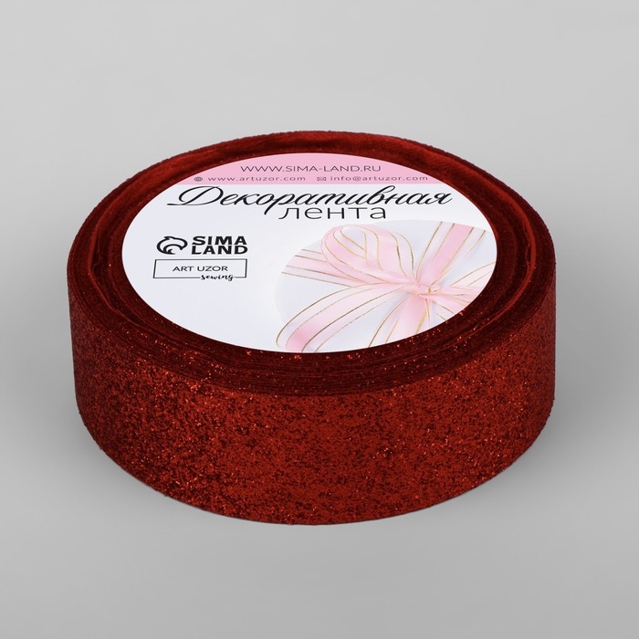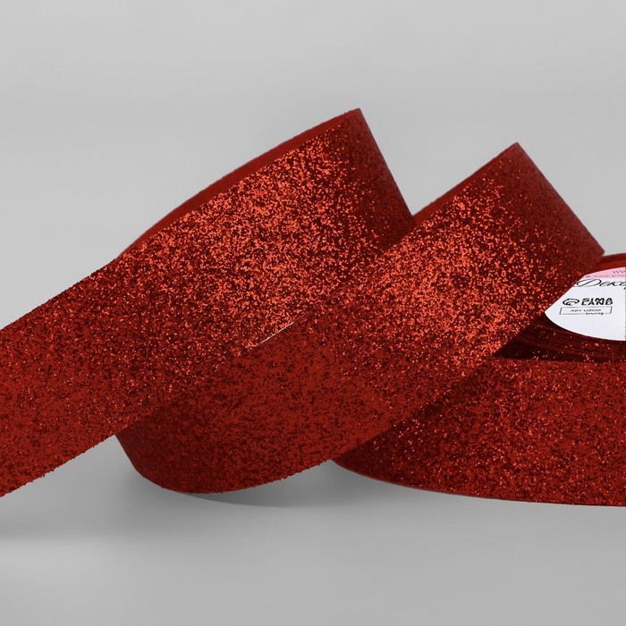 Лента декоративная «Блёстки», 25 мм × 9,1 ± 0,5 м, цвет красный