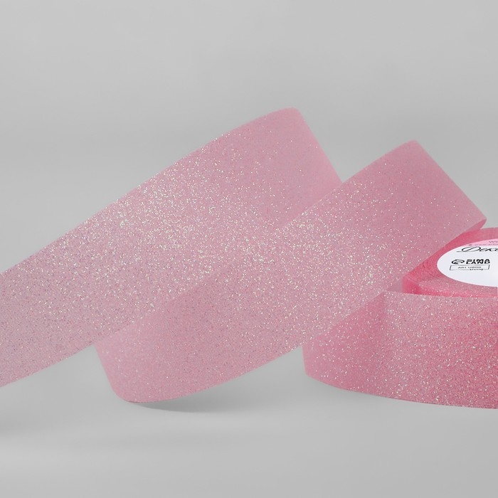 Лента декоративная «Блёстки», 25 мм × 9,1 ± 0,5 м, цвет розовый с перламутром