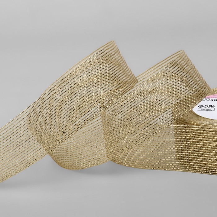 Лента декоративная «Сетка», 25 мм × 9,1 ± 0,5 м, цвет золотой