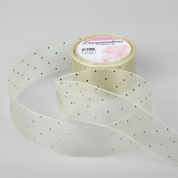Лента капроновая, со стразами, 38 мм × 9,1 ± 0,5 м, цвет молочный