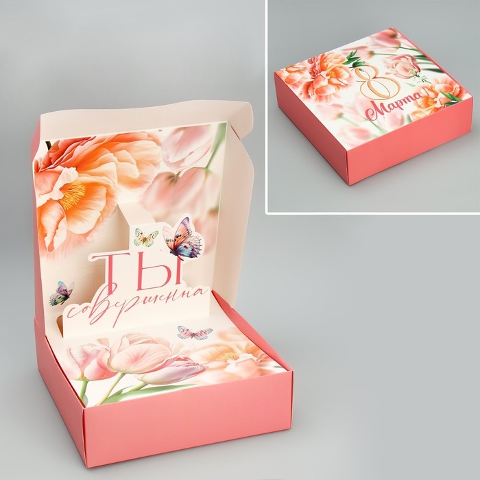 Коробка подарочная складная, упаковка, «Ты совершенство», 8 марта, 26 х 26 х 8 см