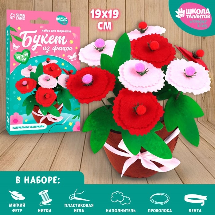 Поделка к празднику — отличный повод провести время с ребёнком и создать замечательную поделку. Детям нравится мастерить из самых невероятных материалов. Оригинальный набор для создания фетрового букета по-настоящему увлечёт ребёнка и станет удачным подарком для талантливого малыша!