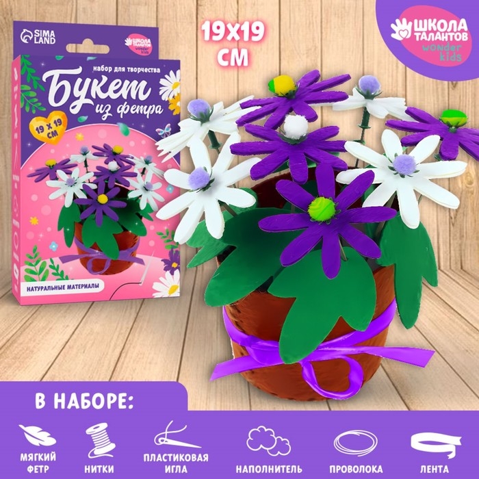 Набор для творчества. Букет из фетра в горшочке «Фиолетовые цветочки»