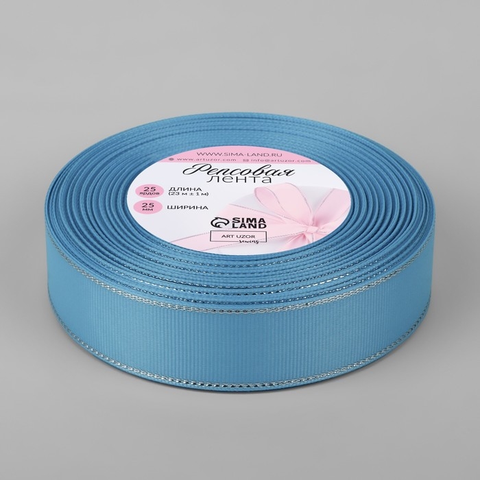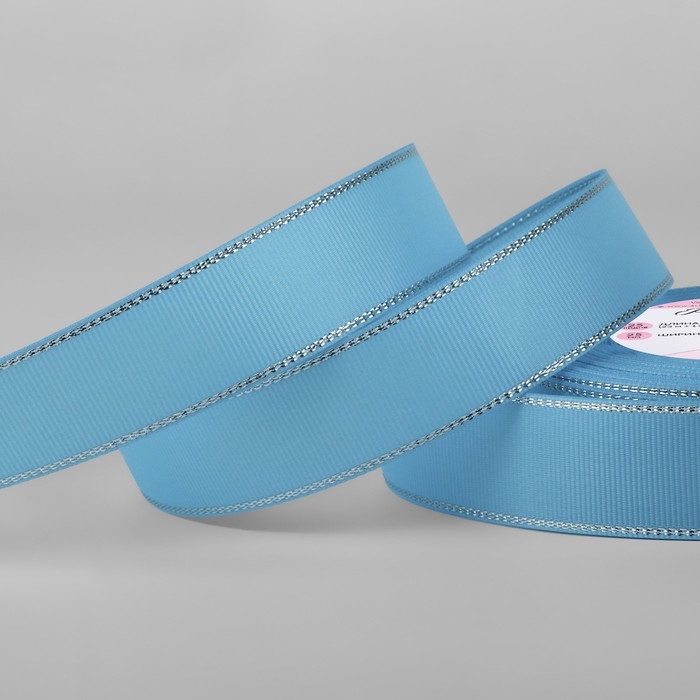 Лента репсовая «Серебряные нити», 25 мм × 23 ± 1 м, цвет ярко-голубой