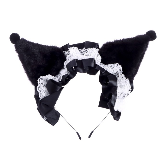 Карнавальный ободок новогодний «Кошка» аниме с рюшками, цвет черный