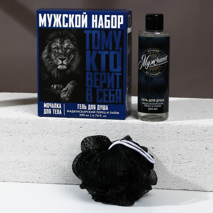 Подарочный набор косметики «Тому, кто верит в себя», гель для душа 200 мл и мочалка для тела , HARD LINE
