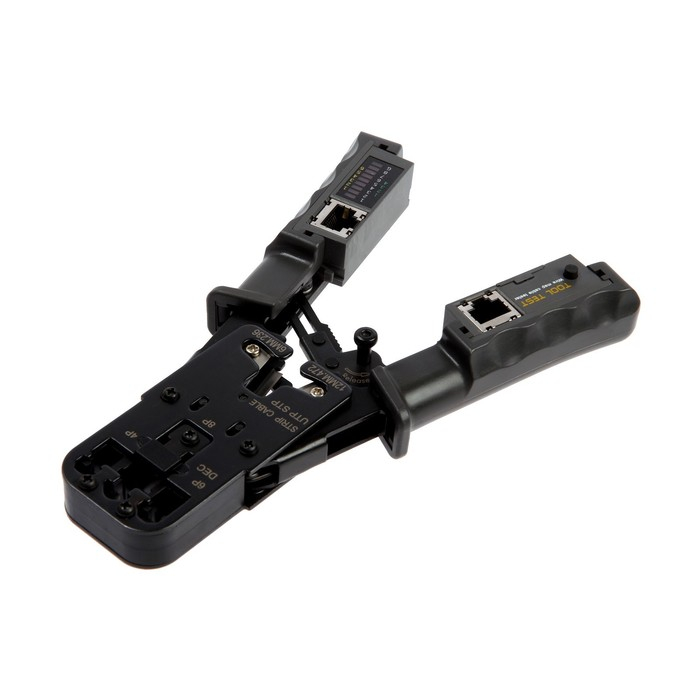 Кримпер-тестер ТУНДРА, с тестером кабеля, RJ-45 8P, RJ-12 6P, RJ-11 4P, вертикальный обжим