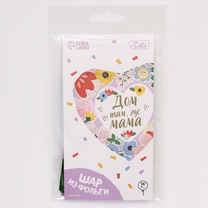 День матери. Воздушный шар фольгированный 18" «Дом там, где мама», сердце, с подложкой