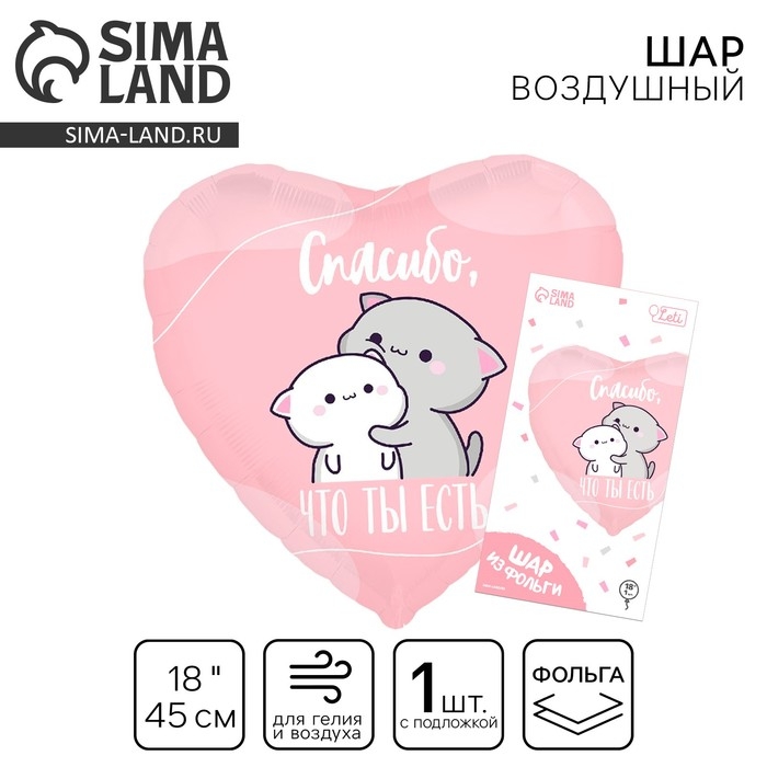 Воздушный шар фольгированный 18" «Спасибо», сердце, с подложкой