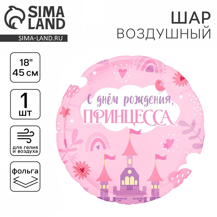 Воздушный шар фольгированный 18" «С Днём Рождения, принцесса» круг