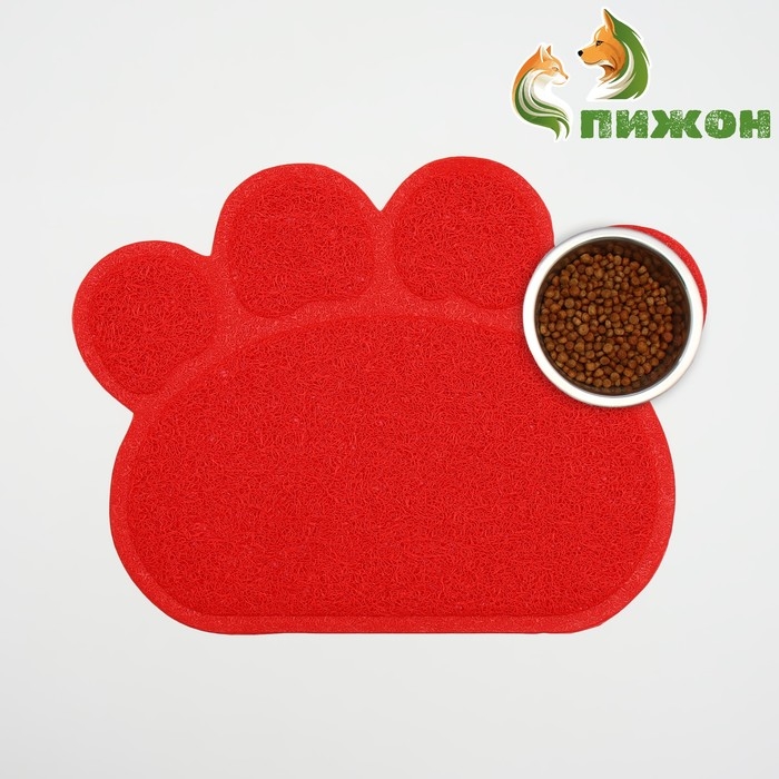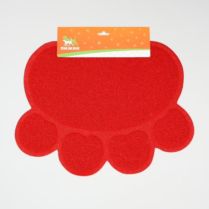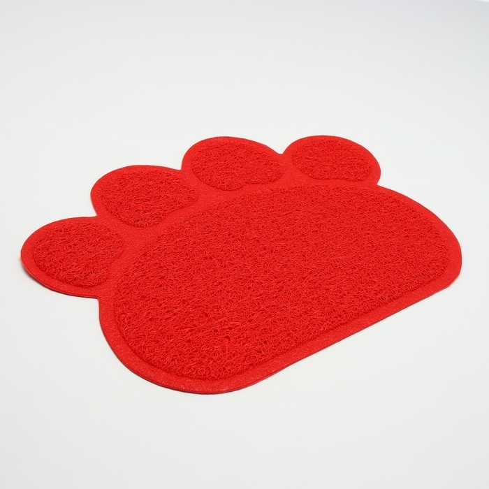 Коврик 2-в-1 под миску/туалет животных "Лапка", 40 х 30 см, красный