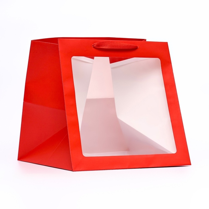 Пакет крафт с квадратным дном и окном, 30 х 30 х 30 см, красный