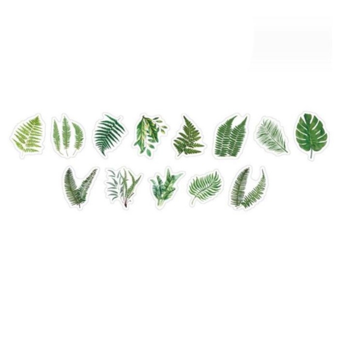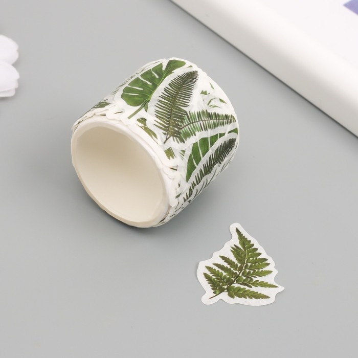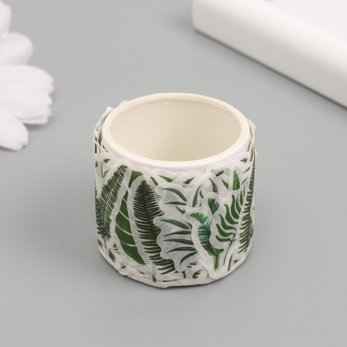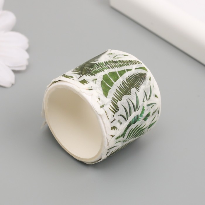 Наклейка бумага "Тропические листы" d=3 см 100 шт в рулоне 3,5х3,5 см