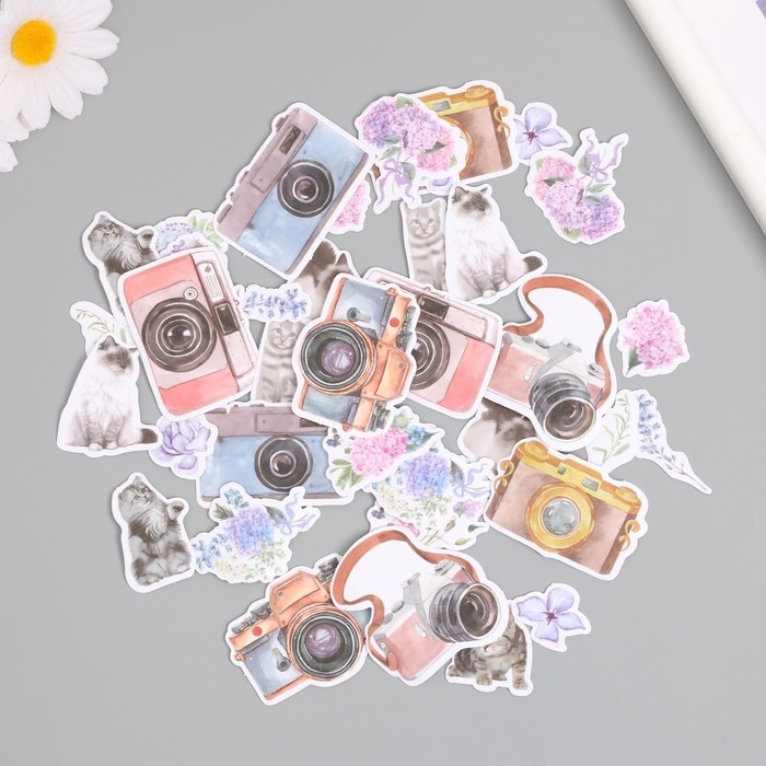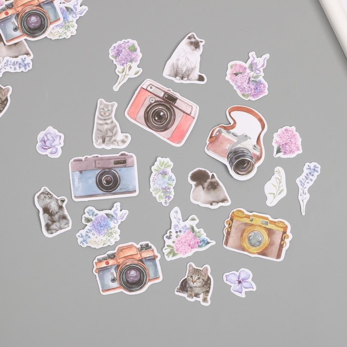Наклейки для творчества "Коты, цветы и фото" 3,5х5 см набор 40 шт 9,4х8,4х0,5 см