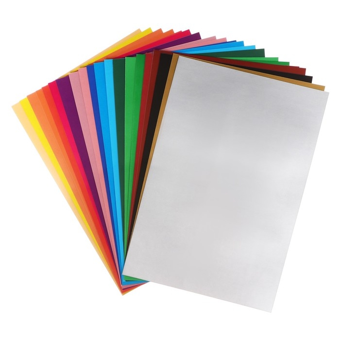 Картон цветной А4, 20 листов, 20 цветов, волшебный (золото+серебро) Calligrata TOP, мелованный 200 г/м2, в папке