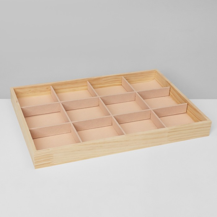 Подставка для украшений 12 ячеек, дерево, 35×24×3, цвет бежевый