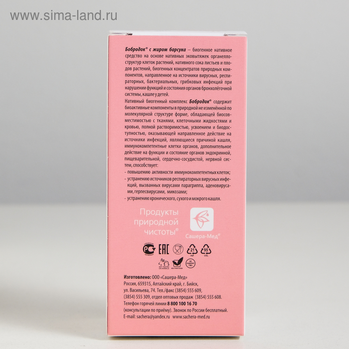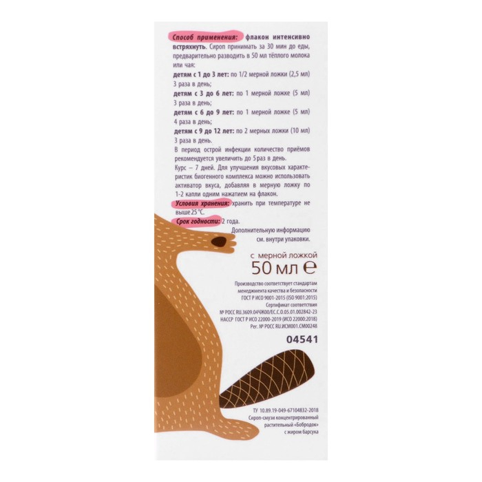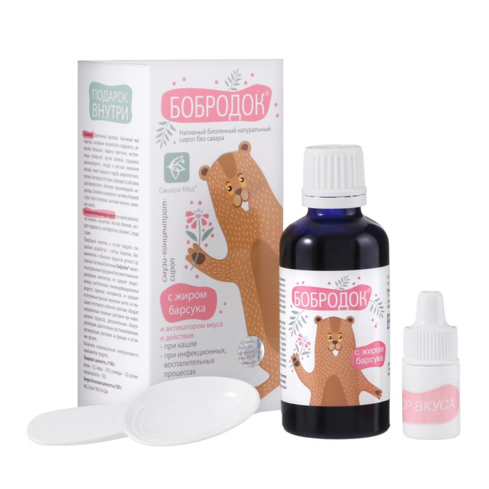 Бобродок натуральный сироп от кашля, с жиром барсука, без сахара 50 мл