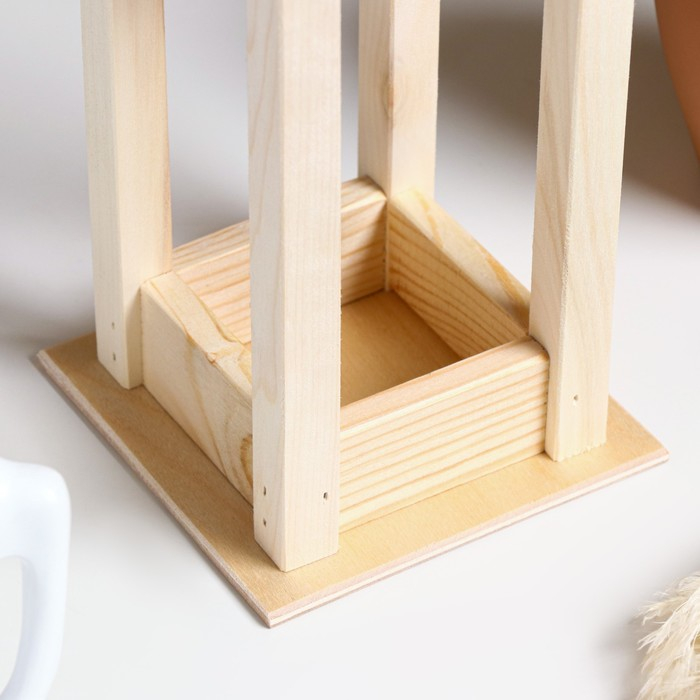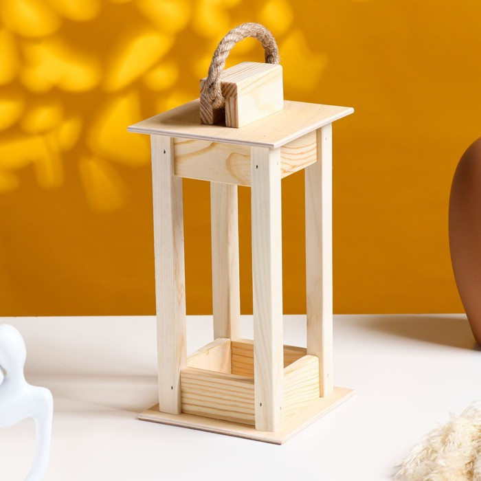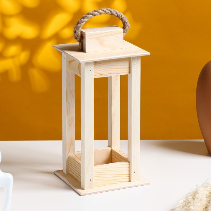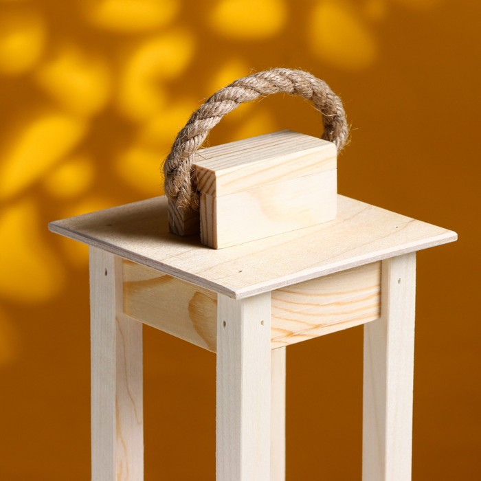 Кашпо деревянное 11×11×24 см "Фонарик", ручка верёвка, натуральный Дарим Красиво