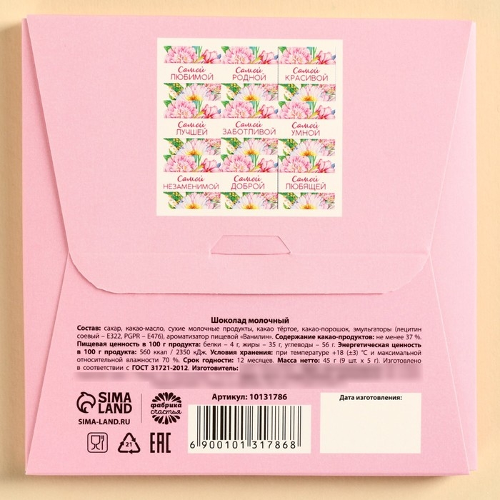 Шоколад молочный «Любимой маме», 45 г ( 9 шт. х 5 г).