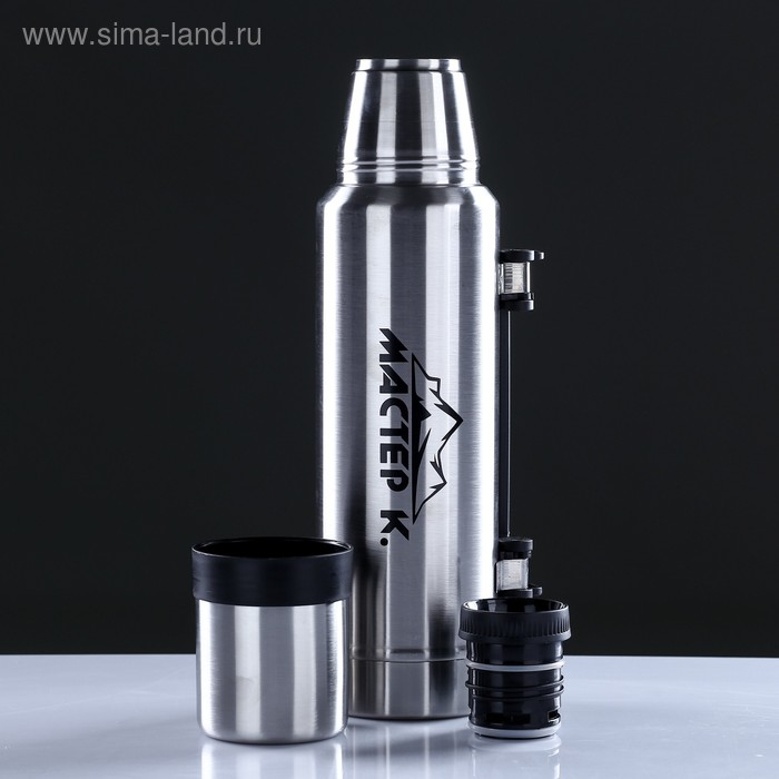 Термос, 1.2 л, Движение, "Мастер К.", с кружкой, сохраняет тепло 18 ч, 36 х 11 см, хром